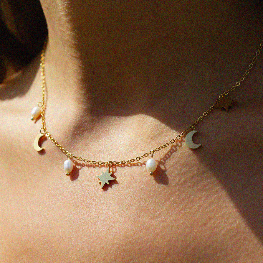 Named after the enchanting Celestial Dream, this mesmerising necklace features an array of stars and moon symbols, embodying the mysteries of the night sky. The intricate design captures the ethereal beauty and timeless elegance of the cosmos, with each star and moon detail meticulously crafted to evoke a sense of wonder and serenity.